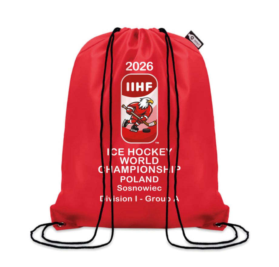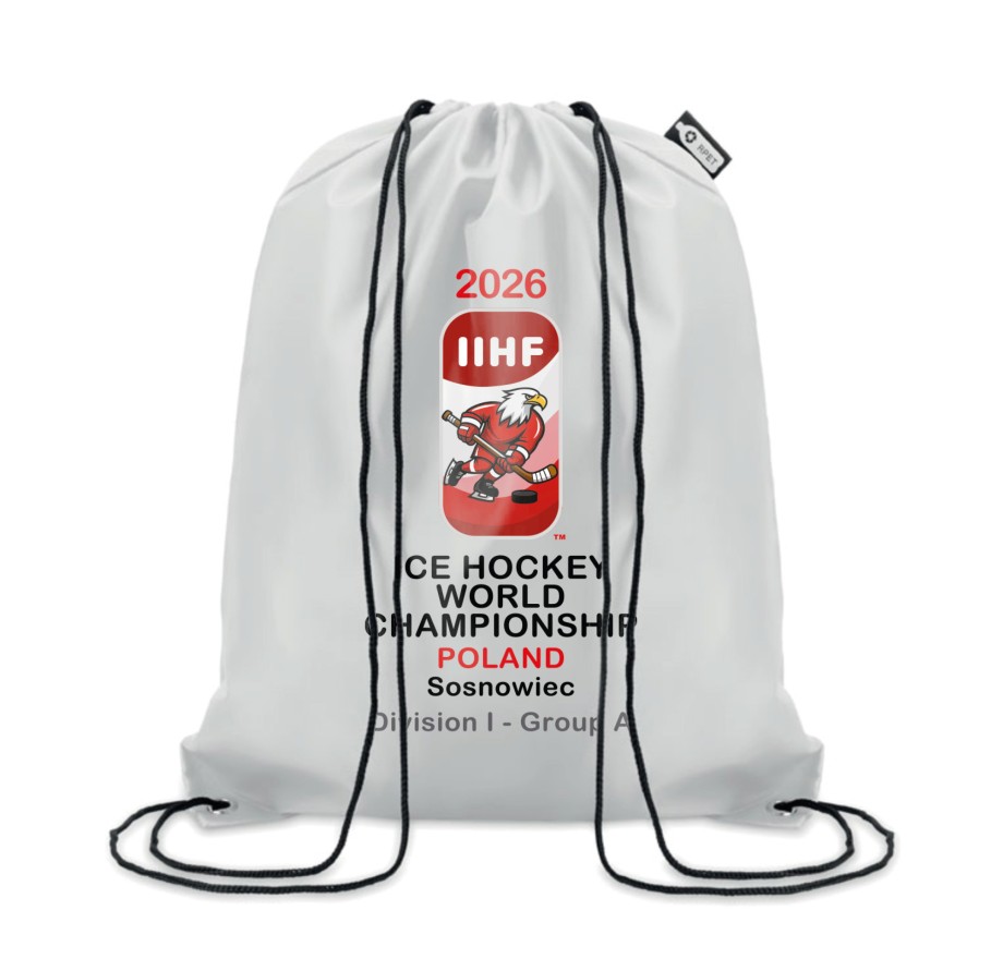 • A lightweight and practical drawstring bag created for the IIHF Ice Hockey World Championship Division IA 2026 in Sosnowiec.